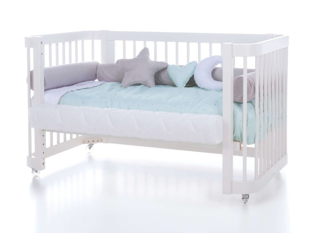 - Culla (60×80 cm): Perfetta per i primi mesi, utilizza le spondine piccole incluse per garantire sicurezza e comfort, completata da un materasso e una rete specifici.