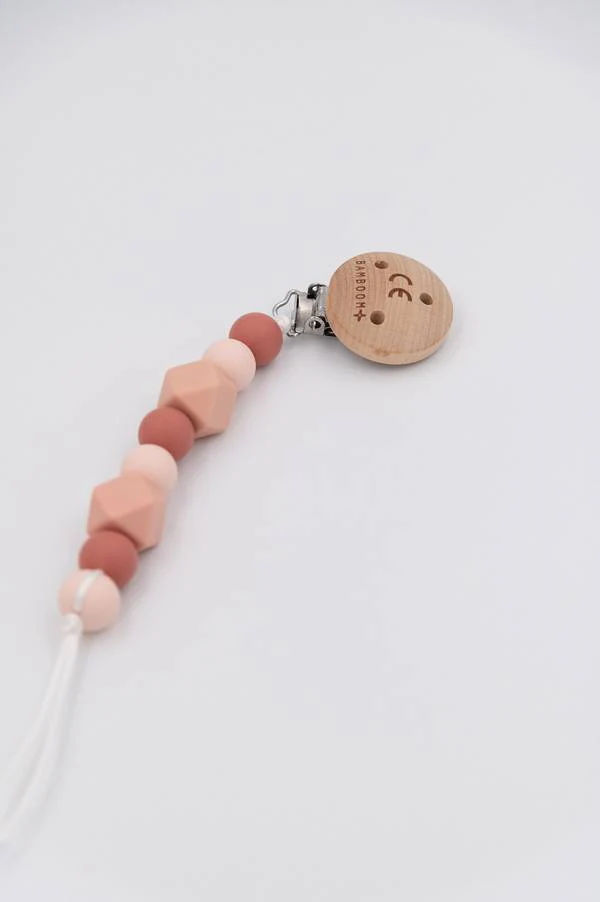 Un elegante portaciuccio realizzato in silicone: è dotato di una pratica clip in legno per appenderlo ai vestiti del tuo bimbo ed è realizzato con colori neutri che ti permettono di abbinarlo facilmente all’abbigliamento!