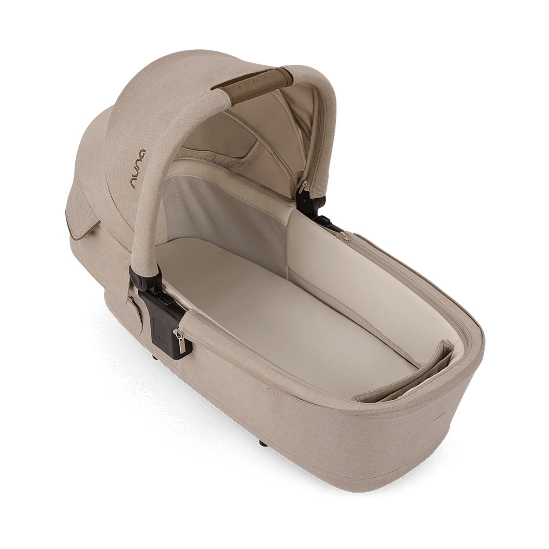 La capottina con protezione UPF 50+, l’iconico Dream drape™ di Nuna e il parapioggia incluso forniscono una protezione aggiuntiva dagli elementi atmosferici e garantiscono pisolini piacevoli e ininterrotti. I pulsanti a memoria integrati e la maniglia di trasporto in ecopelle cucita a mano facilitano lo sgancio dal telaio del passeggino, per facilitare la vita dei neo genitori.