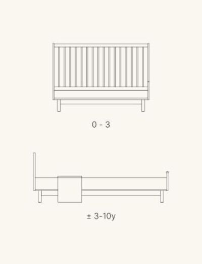 Grazie al pratico Junior Kit, il letto cresce facilmente con il tuo bambino. Si trasforma in un letto junior di 170 x 70 cm, offrendo al tuo piccolo uno spazio confortevole per dormire fino all’età di 10 anni. Il kit include un’estensione per la rete a doghe e un pratico comodino, perfettamente adattato alle esigenze di crescita del tuo bambino.