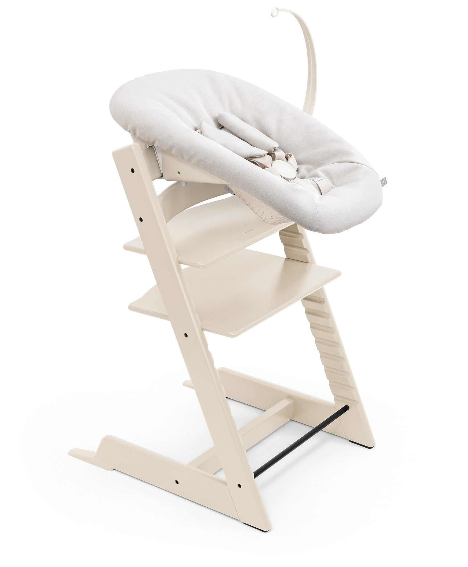 Cosa è compreso: Tripp Trapp® Newborn Set con rivestimento; cintura di sicurezza a 5 punti e morbidi spallacci protettivi; gancio appendigiochi; pattini antiscivolo Tripp Trapp®; set tessuti Tripp Trapp®.