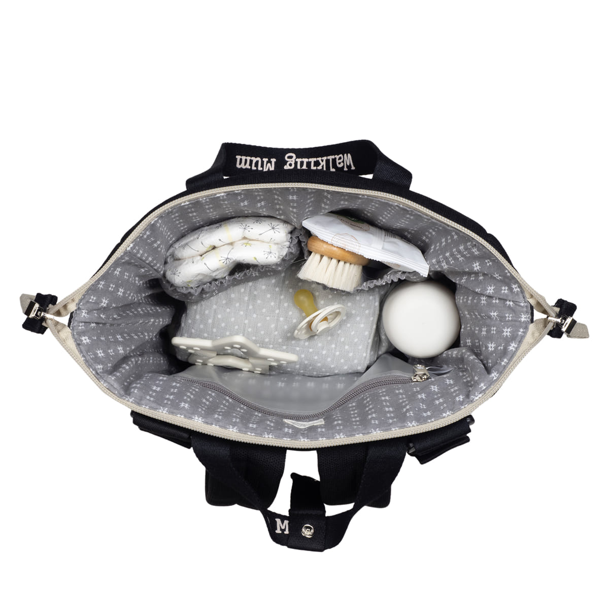 Dispone di utili tasche per avere tutto in ordine. La borsa ha un sistema d’attacco universale per appendere in qualsiasi modello di passeggino.Walking Mum protegge il vostro bambino utilizzando i migliori tessuti.